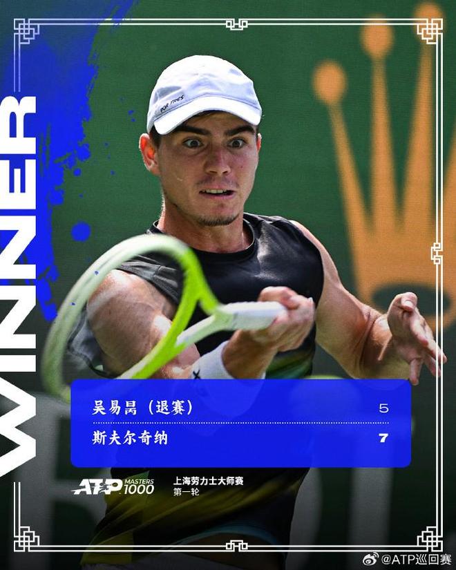 10月2日,上海大师赛男单首轮,吴易昺首盘5-7不敌斯夫尔奇纳后,因伤退赛,斯夫尔奇纳晋级第二轮。吴易昺收获23760美元,原计划下一站济南CH125。