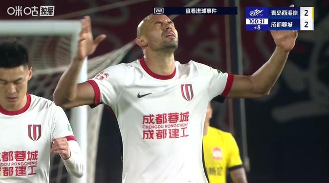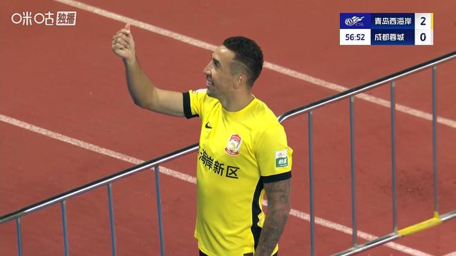 下半场易边再战,成都蓉城的失误再次被青岛西海岸抓住,古尔芬克尔第57分钟中线附近横传被抢断,阿齐兹弧线球送出禁区,戴维森插上推射上演梅开二度,青岛西海岸将比分扩大为2-0。第68分钟,罗慕洛助攻费利佩头球破门扳回一球。补时阶段周定洋的进球因越位在先被吹,最后时刻费利佩攻进绝平球,最终成都蓉城2-2逼平青岛西海岸,不败场次扩大为11场。