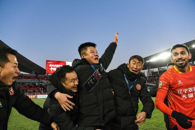 “这场比赛就不用点评了,因为对于我们来讲,今天这场胜利是属于所有辽宁人民的,也属于喜欢辽宁铁人的球迷们。我们等待太久了,我们需要为家园献上一份厚礼。”辽宁铁人主帅李金羽赛后笑称自己当下就想“今晚一定不醉不归”,“这个夜晚值得庆祝。对我来讲,这是阶段性的胜利,但从足球的角度来说,这只是取得了一小部分成绩。未来球队将继续胜不骄、败不馁。虽然今天我们拿到了中甲冠军,但还有更高级别的挑战在等着我们。”辽宁铁人的前身沈阳城市足球俱乐部成立于2015年,当年通过中冠联赛升入中乙,并于2019赛季夺得中乙联赛冠军冲入中甲。2020年4月,沈阳城市足球俱乐部更名为辽宁沈阳城市足球俱乐部,扛起了辽沈足球的大旗。由于资金投入等原因,2020至2023赛季,辽宁沈阳城市队一直在中甲联赛的中下游徘徊。