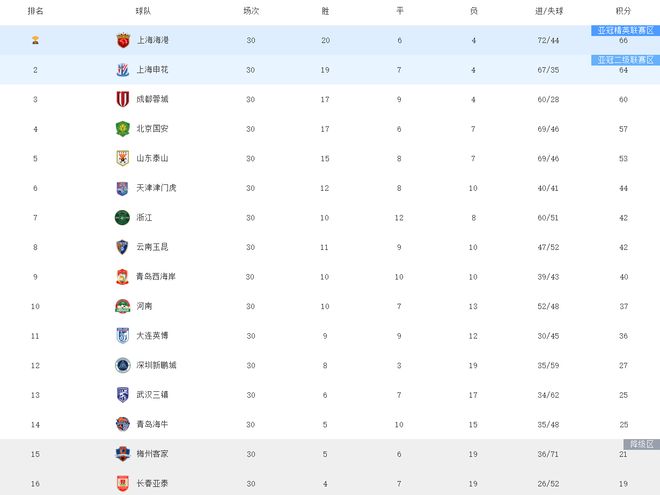 1、这是上海海港连续三个赛季夺冠,队史首次做到,也是连续三个赛季力压上海申花夺冠。2、本赛季,上海海港缺少奥斯卡、武磊基本不踢情况下,依然能够拿下冠军,上海申花拼了三个赛季连续收获亚军。本赛季联赛最终排名如下——