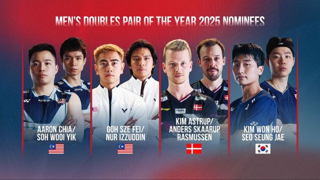双打方面,刘圣书/谭宁被提名年度最佳女双,其他三对组合分别是韩国的白荷娜/李绍希、金慧贞/孔熙容以及马来西亚的陈康乐/蒂娜。冯彦哲/黄东萍和蒋振邦/魏雅欣一同被提名最佳混双,竞争组合是泰国的德差波/苏皮萨拉和马来西亚的陈堂杰/杜依蔚。男双四对提名组合分别是马来西亚的谢定峰/苏伟译、吴世飞/伊祖丁,丹麦的阿斯特鲁普/拉斯姆森,韩国的金元昊/徐承宰。