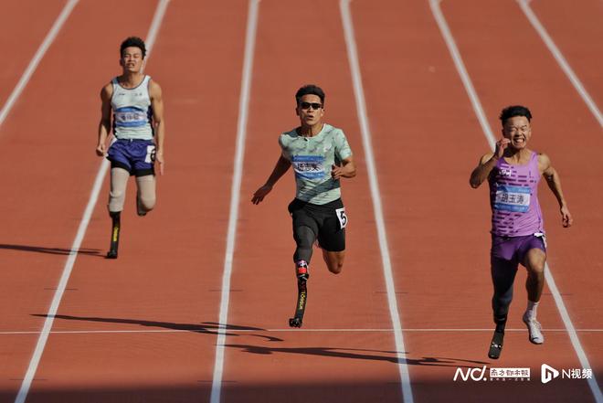 女子400米T47级决赛,当天恰好过生日的河南选手李露庆祝夺冠。