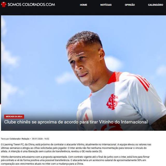 根据巴西多位记者,甚至是巴西国际跟队记者爆料,辽宁铁人在最近提高了报价,比他在巴西国际的收入高出50%,达到了维蒂尼奥的薪资要求,而巴西国际也有意0转会费放人,维蒂尼奥本人对加盟辽宁铁人非常感兴趣,会在最近几天做出最后的决定。